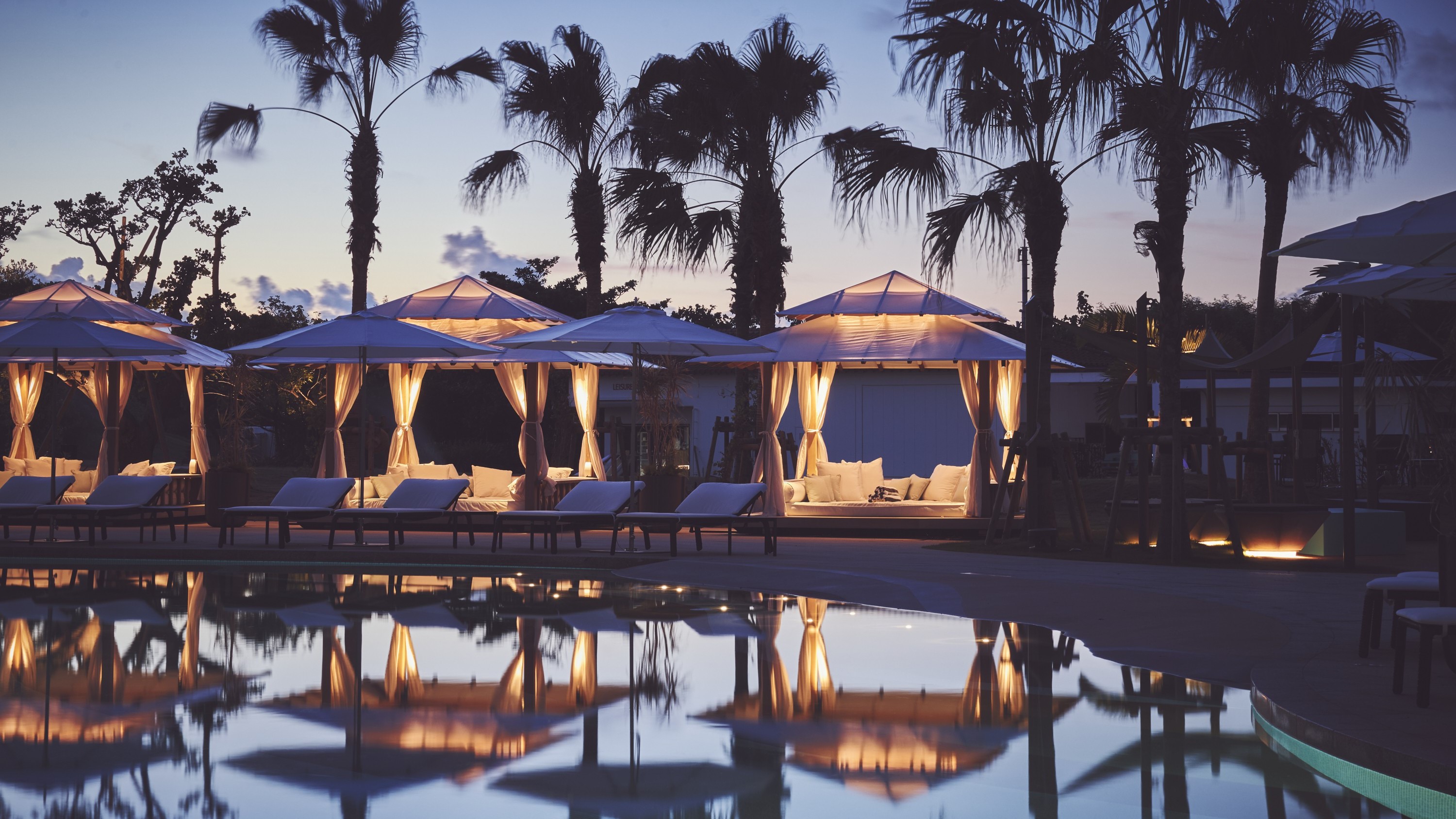 石垣島のホテルといえばANAインターコンチネンタル石垣リゾートが有名。ナイトプールは夜の10時まで利用することができ、中でも魅力的なのが、カバナ。まるでお部屋の中のような広々とした空間でリラックスすることができます。