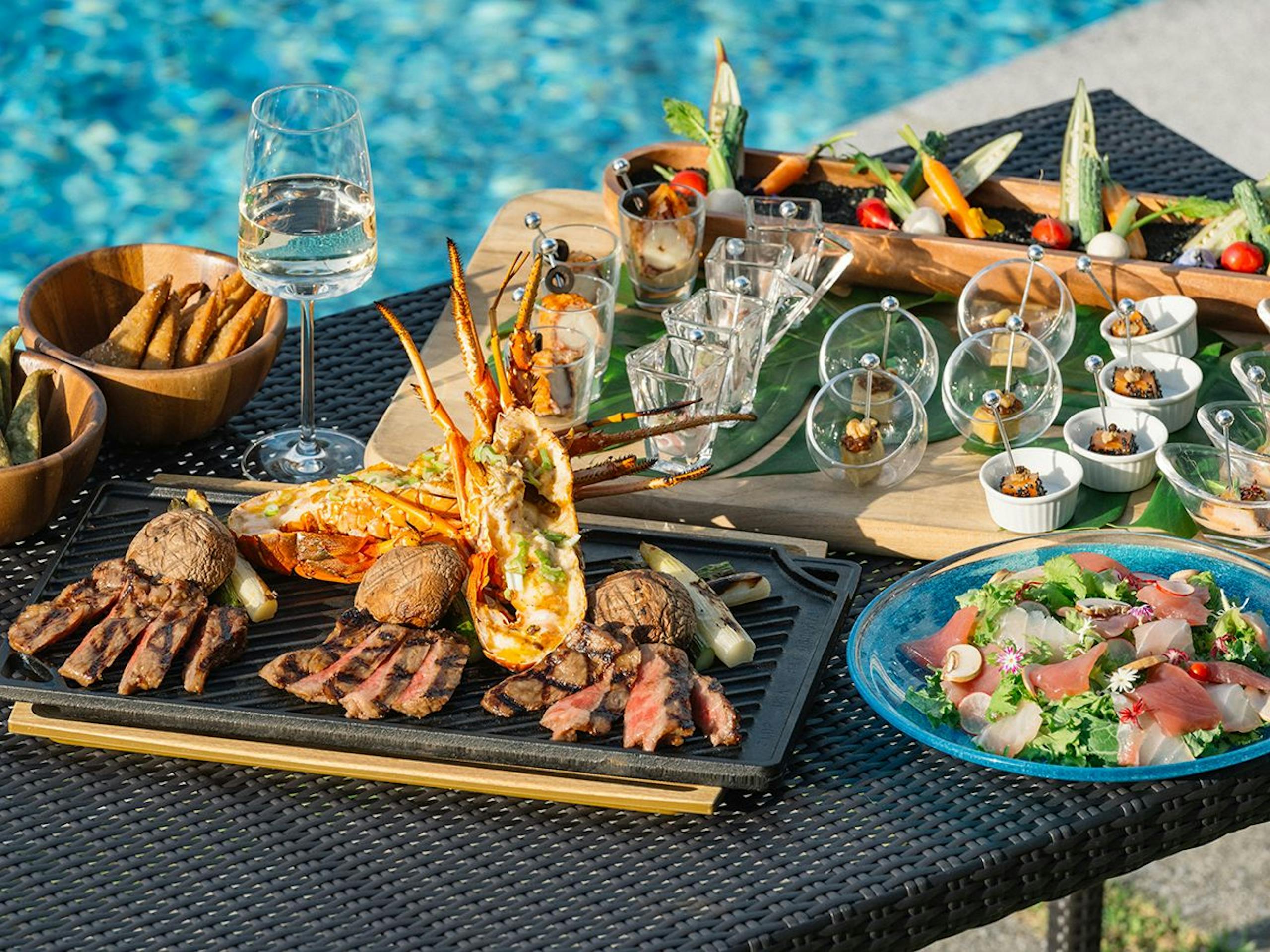 プールサイドエリアでは美しい東シナ海や亜熱帯の木々に囲まれながら、時間を問わずバーベキューを楽しむことが可能。