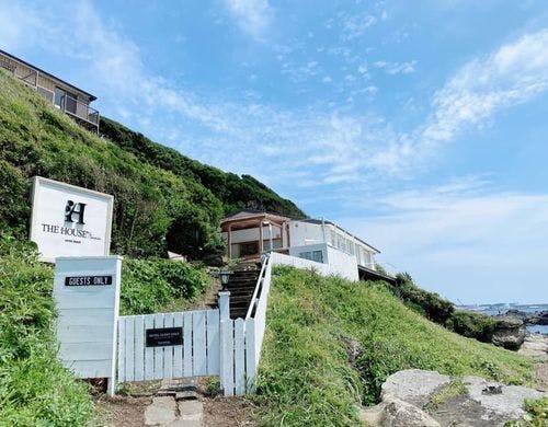 THE HOUSE Moroiso secret beachは、東京から約1時間半の距離にある、1日1組限定、目の前に美しい「諸磯ブルー」の海とプライベートビーチが広がる隠れ家的なヴィラ。車では直接行けない場所にあるため、まるで離島にいるかのような特別な雰囲気を味わえます。